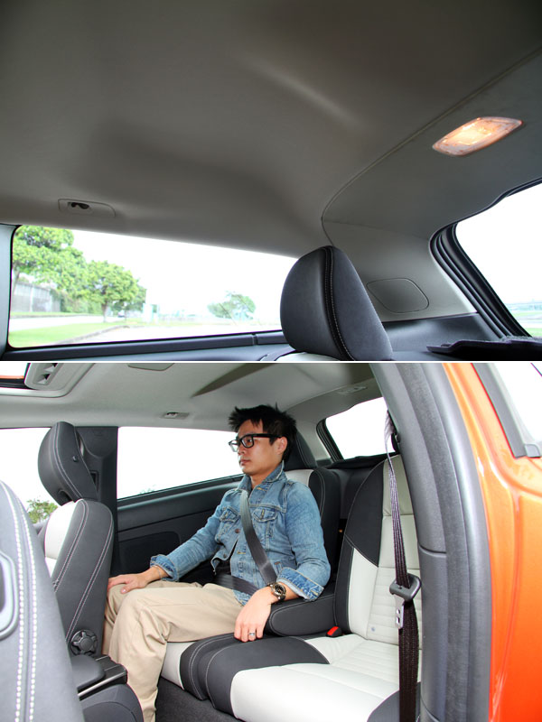 除了「好用」,「好坐」也是Volvo的特色之一,在著重人體工學下,C30的座椅也延續了家族的設計風格,簡單的剪裁卻有良好的支撐性,即使是後座,在有限的空間裡,也可以讓你坐得舒舒服服;至於在空間部分,並不是Volvo的強項,但也不會過於侷促,採三門設計的C30,在前後縱向的空間上仍有水準內的表現,頭部空間受到低斜的車頂線條略受影響,但原廠仍貼心地將後座上方的車頂棚略做挑高,提升頭部空間,視覺上也許有些壓迫,但實際乘坐仍比預期的好些,一般成人乘坐並不成問題。