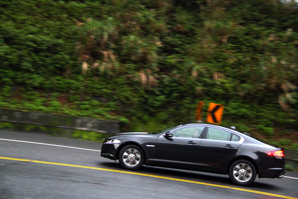 至於在操控性部分,一直以來Jaguar都有著屬於自己的調性,比起德國車那樣一板一眼,Jaguar則多了分優雅感,在一般與高速道路上行駛,可以很自在的奔馳,然而若是在山道上,XF 2.0i Luxury的靈活性就會略微降低,再試駕當天,自宜蘭回台北的路程,我們選擇行駛北宜公路至坪林後再轉國道,於宜蘭端九彎18拐路段,在近10年來不斷整修拓寬後,已成為北台灣跑起來最舒服的一段山道,路面夠寬,路面品質也在水準之上,連續彎道的頻率也很容易掌握,此時,XF 2.0i Luxury都還可以從容應付,當過了宜蘭與新北市交界後,路面變窄,連續彎道的頻率變頻繁,若在連續左右、高低速連接的複合彎道中,XF 2.0i Luxury的轉向反應就會有些不足,必須將車速再放慢,才可以更順暢地通過,基本上XF 2.0i Luxury還是以豪華舒適為主,厚實的座椅在寬廣道路上長時間乘坐十分舒適,尤其是乘坐於後座時,頭部位置略為於C柱內側,讓乘客有種被包圍住的感覺,很容易就讓人想小睡一下,只是頭枕泡棉稍嫌硬了些,影響了頭部的舒適度。