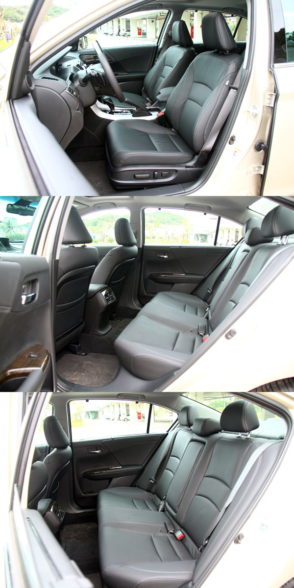 在Honda原廠的努力下,讓全新Accord的車內空間得以維持原有的水準,同時,在全新Accord發表會與試駕活動的行前簡報中,原廠人員都點出Honda一向致力於保持車內視野的開闊度,在當今許多新車為了更強烈的環艙感與安全考量等因素,將車身腰線提高,使得車窗面積縮小,影響了車內的視野,無形中也加大了乘客乘坐時的壓迫感,以及駕駛者的視線死角;但是在Honda卻可以在兼顧整體設計下,於每一輛車上都保有極為明亮、開闊的視野,因為Honda認為良好的視野是車輛主動安全的第一步,讓駕駛者可以掌握越多車輛周遭的狀況,就可以有效預防碰撞的發生,對於乘客來說,也可以獲得更放鬆的乘車心情。