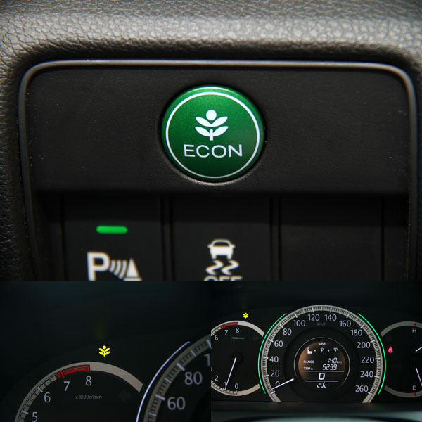 在Accord上同樣可以見到Eco Assist節能輔助系統與ECON自動節能模式,當車輛是較節能的方式行駛,儀錶板中央的光環就會呈現綠色,可讓駕駛更有效的管理油門控制。