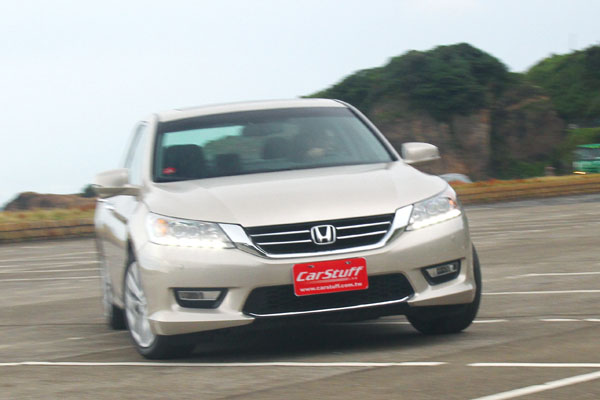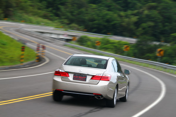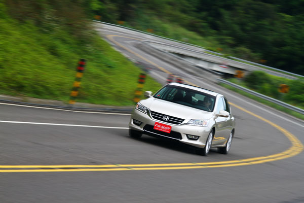 至於在操控面部分,在懸吊系統改為較車界廣泛使用的前:麥花臣、後:多連桿配置,為保留以往採雙A臂懸吊系統所賦予的良好操控口碑,Honda以當今已十分純熟的麥花臣懸吊系統調校技術,提供精準地指向性與貼地性,讓全新Accord盡可能維持原有的水準,在經過兩天試駕,全新Accord的確合乎預期,在操控部分沒有失去該有的表現,唯減震系統設定上還是略偏舒適取向,面對台灣複雜的路況,在突遇路面起伏時,瞬間的擺幅會比較明顯,沉穩性還是略遜於主要的歐洲對手。此外,全新配置的電子轉向系統,動力輔助力道卻有些過多,使得方向盤轉向感過輕,而且在速度提高後,輔助力道仍未改變太多,反而影響了操駕時的手感,在面對連續彎道時,會容易因轉動方向盤的力道比預期大,出現轉幅過多的情形,同樣得花不少時間適應,在轉動方向盤的力道必須控制地更加細微,才能有效的掌握轉向幅度,是近年來試駕眾多新車中,較為特別的設定。