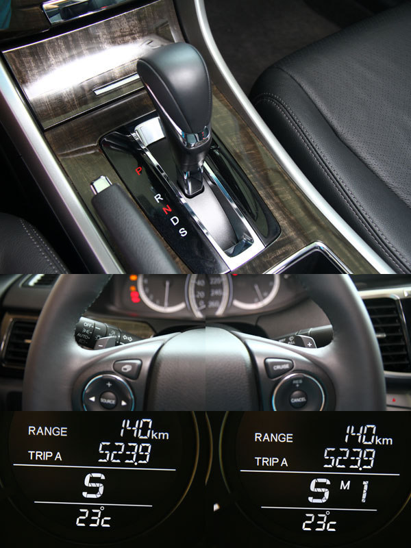 然而在實際上路後,一起步加速就將原本的疑慮給消除,尤其是在CVT變速系統的表現部分更是讓人感到驚訝,一直以來我就對CVT沒有多大的好感,因為它出了換檔平順外,在動力傳遞、轉速與速度提升的同步感上十分薄弱,傳統變速系統,駕駛者可以在掌握齒比設定後,清楚的了解在什麼情況下使用什麼檔位,保有較多的駕駛自主性,但是CVT變速系統是利用鋼帶與兩組驅動盤負責傳輸動力,並且藉由改變鋼盤直徑達到改變齒比的效果,所以改變齒比的速度就直接影響了引擎轉速與車速提升的同步感,採傳統變速系統的車輛,在加速時,踩下油門,車速會隨著轉速與動力提升而同步線性的增加,但是在CVT系統上就會出現,引擎轉速已經提升,但是卻還在等驅動盤改變齒比的情形,車速也會跟著升不上來,暢快度大受影響,在彎道中也會很容易迷失檔位與牽引力,大大降低了駕馭樂趣,然而在全新Accord上所配置、Honda全新研發的G-DESIGN SHIFT LOGIC CVT無段變速系統,大幅改善了上述的情形,不僅起步輕盈,連續加速感與搭配傳統手自排變速箱的車款相當,188ps之最大馬力輸出也比想像中的夠用,以往Honda引擎特性都偏向中高轉速才會有較充足的動力,但是在新Accord上卻在低轉速就已經有相當不錯的扭力可驅駛,除了在大腳油門Kick-down時,會稍稍出現一點遲滯感,大致上已經比起過去的CVT變速系統好非常多,此外,在山道行駛時,改採手排模式行駛,以方向盤撥片進行換檔,該具CVT變速系統的表現更是與傳統手自排變速系統不分軒輊,不僅可以直接固定檔位,換檔反應迅速,還可以暢意地將轉速拉高,有著過去CVT變速系統少有的樂趣。