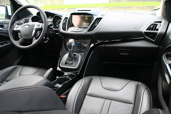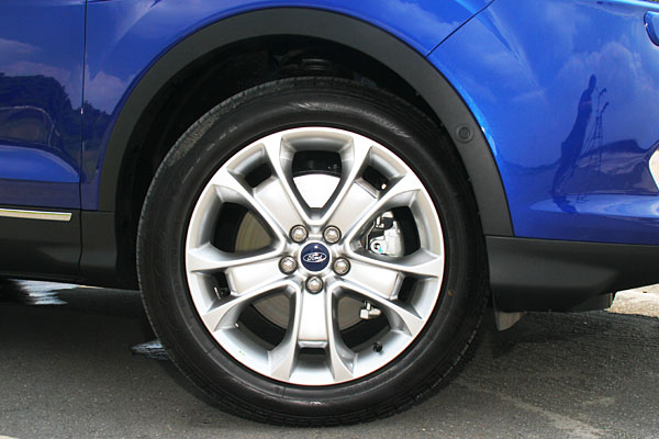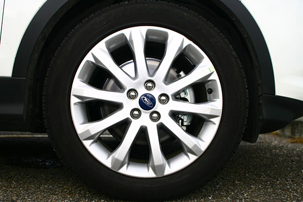 Kuga 2.0L旗艦型搭載智慧型四輪驅動系統,可以每秒62.5次的頻率偵測四輪抓地力,雖然儀表螢幕中顯示四輪獨立的扭力分配,但其實僅有針對前後軸作0-100%的扭力分配功能,主要仍以輕度越野為擅長場地。