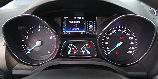 不僅如此,雙筒儀表板中央的行車資訊,也可透過方向盤迅速的操控,加上車室內那刻意營造的前衛氛圍,質感表現也不顯陽春,從前座望去,表現可以獲得高分,但要真難以讓人難以挑剔,MyFord Touch內的觸控介面,可以設計得更有質感,且如可將現有的簡體中文換成與儀表內行車資訊相同的繁體中文,我相信可以獲得更多的掌聲。不過以福特六和的造車邏輯,以此作為未來小改款或年式更新時的升級籌碼,倒是還挺說得過去的市場操作手法;如果筆者猜測成真,要早買先享受、還是晚買更成熟,就待消費者自行斟酌了。