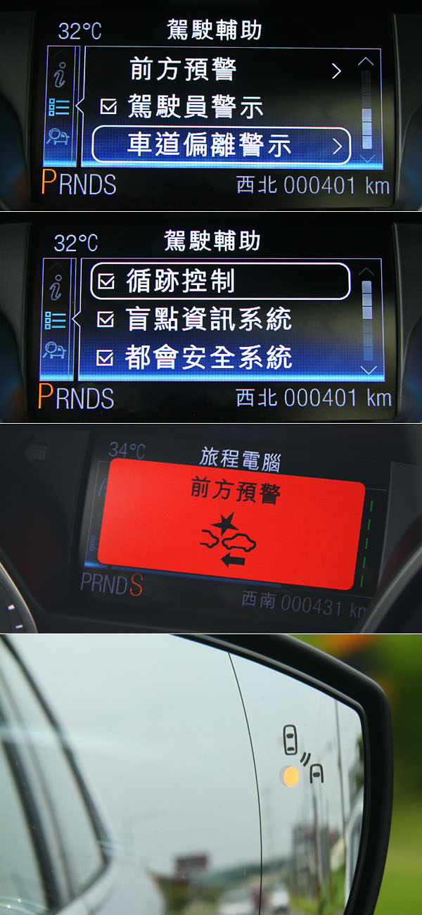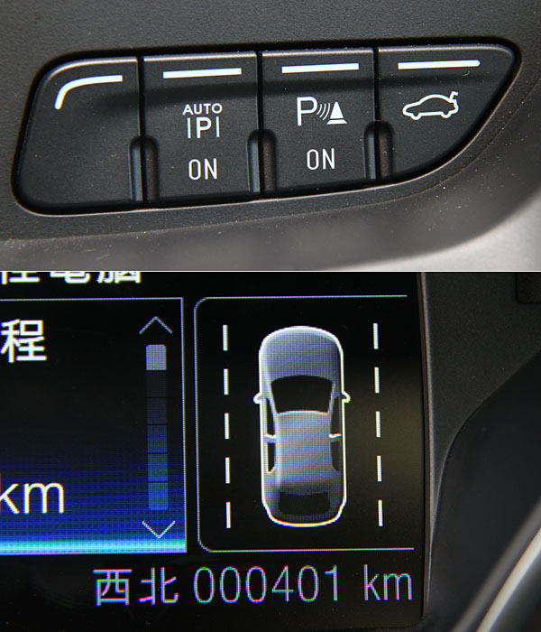 主動式路邊停車輔助系統開關獨立於中控台下方,而LDW車道偏移警示系統就會顯示於儀表板內的儀表,只要車輛偏移就會改變左右側虛線顏色。