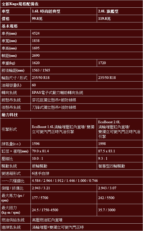 繼澳洲搶先試駕後,人車事率先以Kuga 1.6L時尚經典型為主角進行同級比拼。
