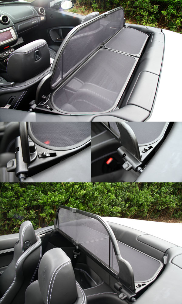 原廠亦附有便利的迴風網,可避免車輛開篷時氣流捲入車內,但使用時僅能乘坐兩人。