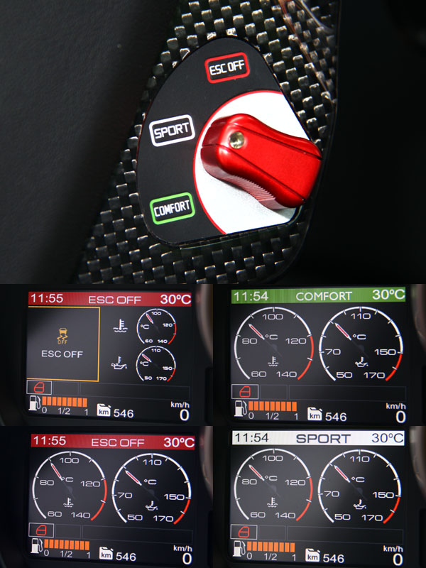 同時,為了提供駕駛者不同的駕馭感受,California 30在方向盤上亦配置了Manettino可變阻尼懸吊系統,不過與其他同門兄弟相比,則是僅保留了Comfort (舒適)、Sport (跑車) 與CST Off (循跡系統關閉)三種模式,基本上在一般道路上,要用到Sport模式的機會就已經非常少了,所以並不建議使用CST Off (循跡系統關閉),以避免因操駕能力不足而發生意外。