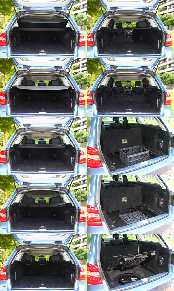 會從E 250 CGI Estate BlueEFFICIENCY的後廂機能開始介紹,除了其「旅行車」的重點身分外,以筆者近來累積諸多旅行車款的試駕經驗〈上述所有品牌的旅行車款應皆接觸過〉,E 250 CGI Estate BlueEFFICIENCY的後廂機能,絕對堪稱數一數二,從空間數據看來,當維持著五人座乘坐規格時,E 250 CGI Estate BlueEFFICIENCY後廂容積已擁有695公升的傲人成績,而如果將後座椅背往前傾倒,更可營造出高達1950公升之驚人容量;或許單就主角自身數據而言,車迷朋友沒有太大感受,但如果舉出同級對手表現,如Audi A6 Avant後廂容積為565/4660公升、BMW新世代5-Series Touring〈今年11月初將會正式引進台灣〉後廂容積為590/1670公升、Skoda Combi後廂容積為633/1865公升、Opel Insignia Sport Tourer後廂容積為540/1530公升,沒有一款車型可與E 250 CGI Estate BlueEFFICIENCY同場比較,其於空間容積上的優勢,清楚展現。