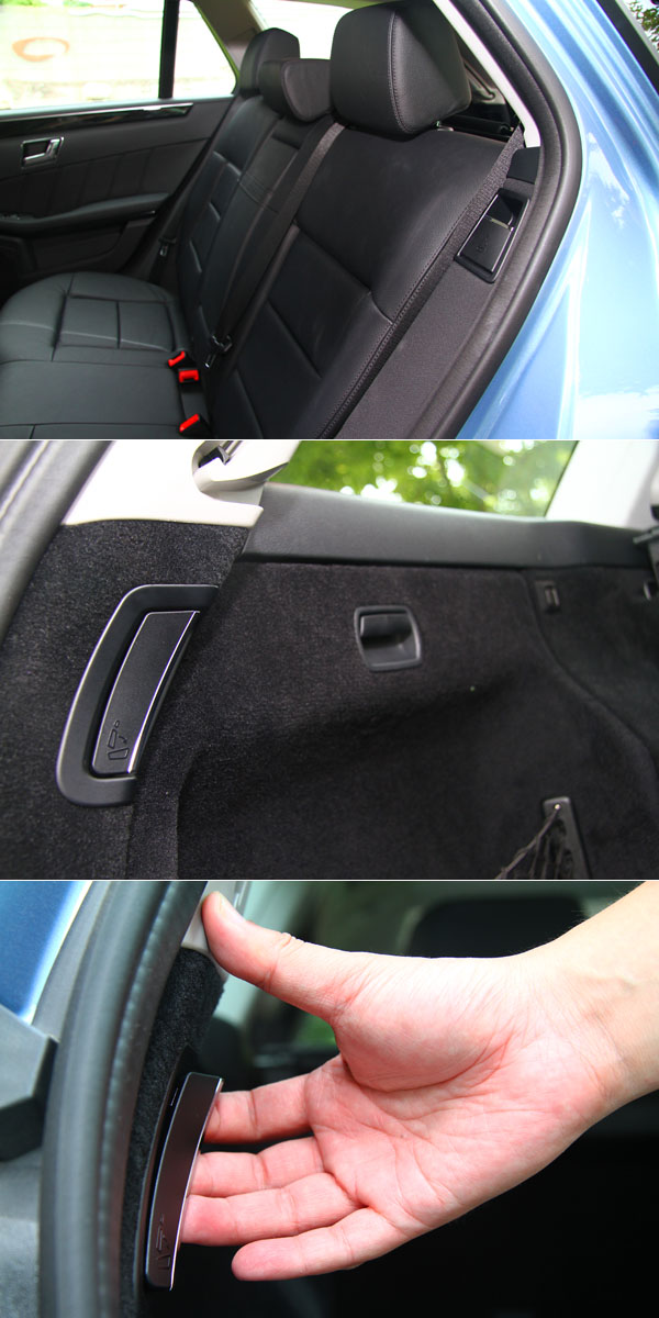 身為傳統豪華汽車市場的強者,M-Benz更清楚了解自身品牌之強項與屬性,在如此優異的空間容積中,如果要車主滿身大汗的為其愛車調整出合適的空間安排,那的確有損三芒星的品牌價值,因此在E 250 CGI Estate BlueEFFICIENCY身上,我們可以輕鬆的在695公升與1950公升間調整變換,採取1/3:2/3比例分離的後座椅背,原廠更為其導入名為quickfold的快截系統,只需透過位於C柱內側〈後座椅兩側〉或是位於D柱下方〈後廂尾端〉處的拉把,便可將後座椅背快速傾倒,無需事先收折後座頭枕或調整椅墊,一支手指輕拉,E 250 CGI Estate BlueEFFICIENCY的後廂就如此簡單供你使用。