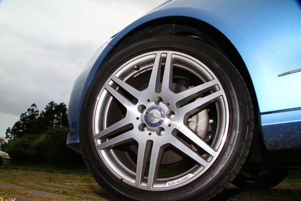 E 250 CGI Estate BlueEFFICIENCY輪胎尺碼四輪標準配備為245/45R17規格,不過此輛試駕車型選配AMG式樣18吋輪圈,搭配上245/40R18規格輪胎。