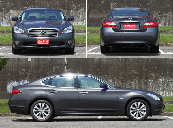 Carstuff人車事試車小組透過新世代M37的首度試駕,已搶先感受了Infiniti新世代M車系的整體實力,從基本車型規格了解,雖然根據M車系首席設計師大澤辰夫先生與副設計師入江慎一郎先生介紹,乃是以大自然之力量作為造型設計靈感發想,但在其嶄新的外貌之下,底盤基礎依舊是延續上代車型,軸距長度相同為2900mm,不過因造型線條的重新鋪陳,車身外觀尺碼提升至4945×1845×1500mm之水準,且在放大的車格中,將大自然之風動曲線設計手法融合自家品牌家族面貌極致發揮,無論是車頭引擎蓋兩側隆起的飽滿肌理、延續至C柱下方的後輪拱弧線、車尾微幅上翹的鴨尾尾翼,還試車頭蔚為品牌DNA的雙弧線包圍營造的水箱罩等,一道道的曲線猶如波波襲來的浪潮般,朝著觀賞者的視覺衝擊。