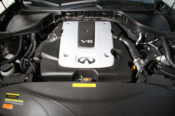 M25所搭載的VQ25HR鋁合金V6引擎 ,排氣量為2496c.c.,具備218hp/6400rpm最大馬力與25.87kgm/4800rpm峰值扭力,為求更佳的車身配重,採取前中置配置。