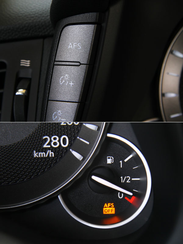 AFS主動轉向系統開關位於儀表左側,作動狀態會顯示於油表區塊內。