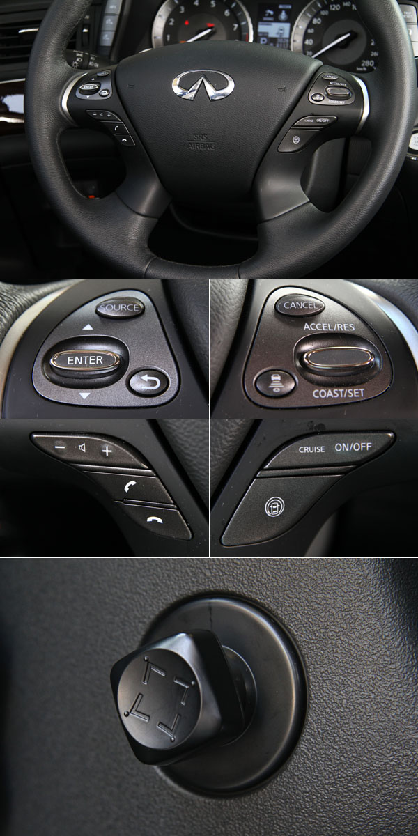 既然身為新世代旗艦車型成員之一,M25 Premium也清楚了解到,只有單一的動力輸出模式,早已難以滿足當前口味日漸挑剔的多金買家,因此特地配置了名為Infiniti Drive多模式行車控制系統,透過位於排檔座後方的旋鈕,提供包含Sport運動、Standard標準、ECO節能、Snow雪地四種行駛模式,藉由調整引擎輸出、變速箱換檔邏輯與VDC介入時機等系統,將引擎的表現作不同需求的表情演出;而上述加速感受乃是建立於Standard標準模式之狀態,而當調整至Sport運動模式後,很明顯的,此引擎反應立顯活潑,透過延後換檔、將引擎轉速維持較高領域的控制,搭配上此具引擎高轉速更顯優異的特性,讓M25 Premium猶如功力放大兩成般的勇猛,無論超車、中高速再加速、或是山道時爬坡需求等,都讓M25 Premium更顯游刃有餘,讓原先平順的動力反應,適度的予以放大,且不會辛辣的難以下嚥,Spoer運動模式,的確是小熱血時的不俗選擇。