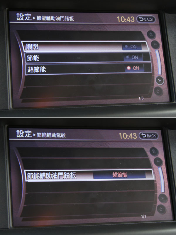 切換至ECO節能模式後,會依照由VIS行車資訊系統內所設定的節能輔助駕駛功能而定。