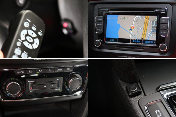 台灣引進地Superb Combi 2.0 TDI另配備的台灣專屬地衛星導航系統,可藉由排檔座前方地小按鈕切換螢幕顯示,以及以遙控器控制,另外雙區恆溫空調系統也為標準配備。