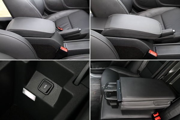 前座中央扶手具有前後滑移調整功能,下方的置物箱內還附有Aux-in外接音源連接埠以及照明燈,後座扶手內也配有伸縮式地杯架。