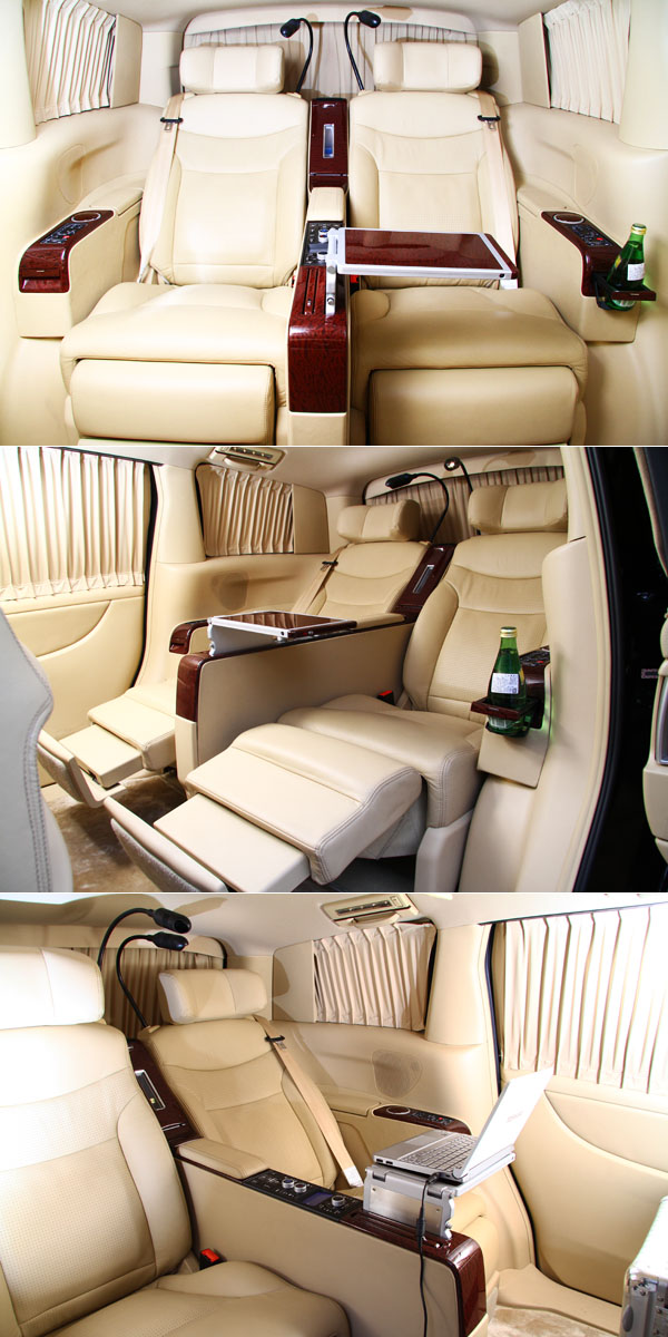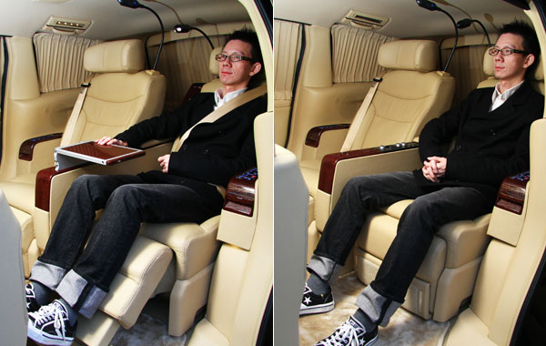 進入Luxgen7 CEO車室內,兩張Ottoman電動按摩座椅為服侍乘客的重點要角;透過兩座椅的多樣變化與週邊配備,如上圖的舒適氛圍輕鬆可得。