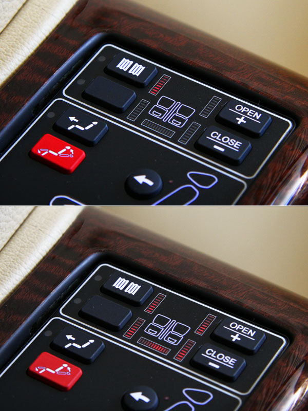 進入後艙,兩張Ottoman電動按摩座椅成為服侍乘客了要角,而在座椅靠近車門側的扶手處,提供了電動遮陽簾、座椅八向電動調整、座椅通風與加熱、座椅記憶功能與電動按摩功能等整合控制介面,其中電動遮陽簾操控按鍵獨立於上方,可同時或單獨控制環艙共五組遮陽簾作動,操作起來就手不麻煩;而在座椅功能控制中,坐姿調整按鍵乃是以圖樣顯示易於判讀,可針對椅背角度、無段腿靠加以控制,其中腿靠除了傾斜角度可調整外,縱長也可依乘客身型加以電動調整,僅有最下方的腳靠是以手動操作。