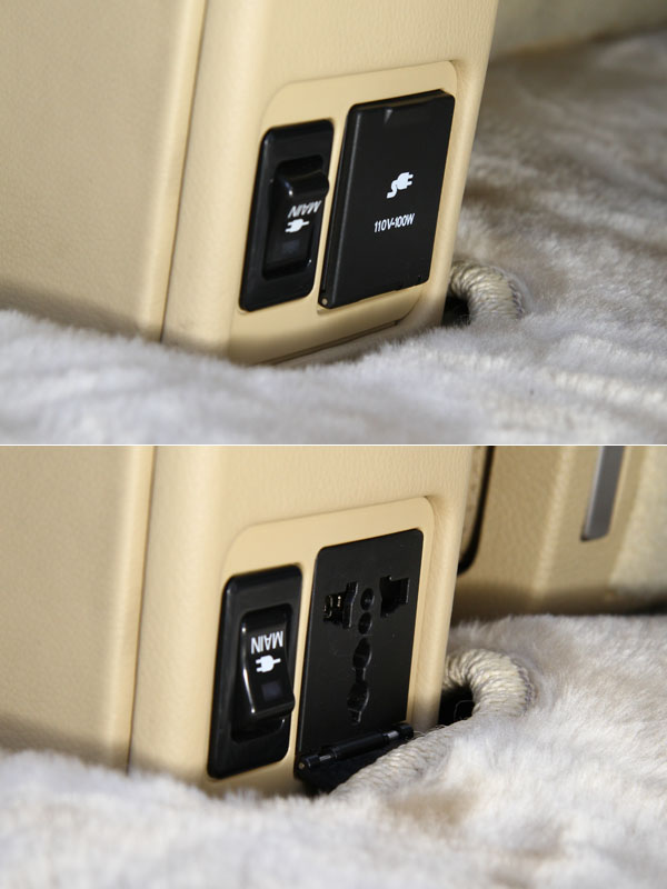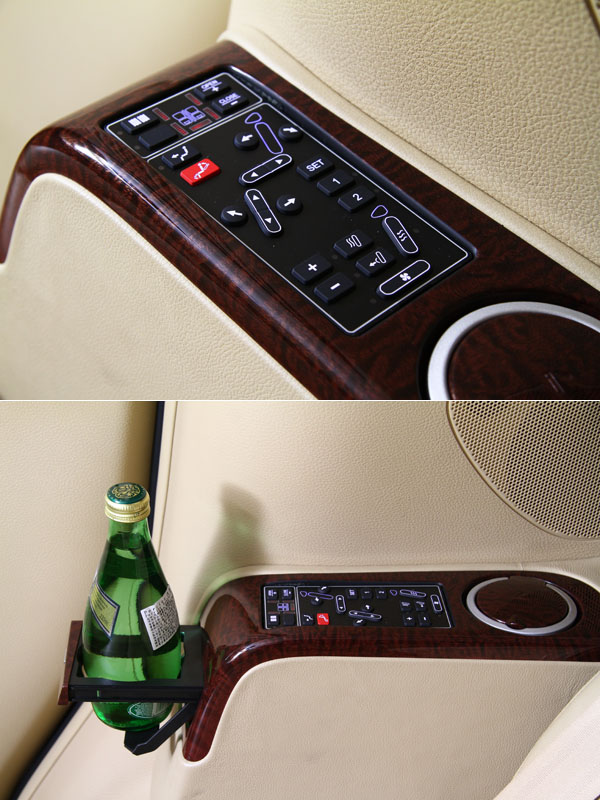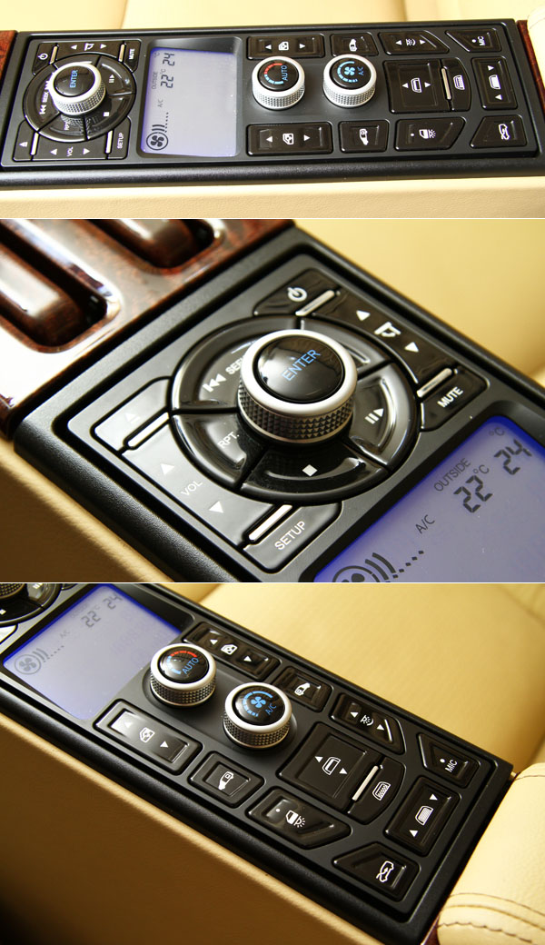 後艙獨立影音播放控制系統,採取單片式CD/DVD讀取格式,輕按開關鍵,播放介面便會傾斜一側讓光碟退出或插入,而在此播放系統中,除了完整的影音控制系統外,還整合了包含私密隔屏、空調、車窗升降、車門啟閉、氣氛燈調整與前後艙通訊系統等操作介面,採明顯圖樣與大面積按鍵設計。