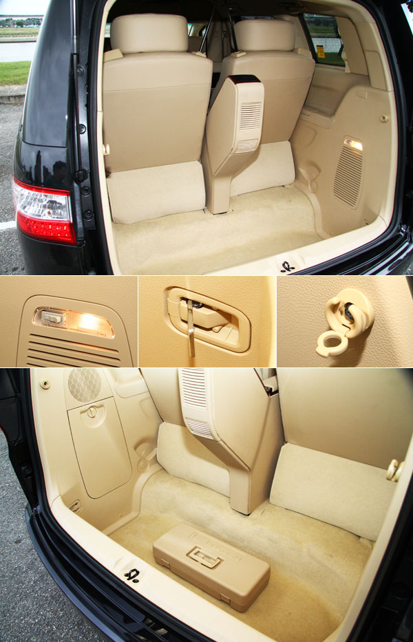 後艙除了提供10.2吋的吸頂式螢幕外,還有著衣帽掛勾、登車把手、時鐘、後座獨立空調與影音設備遙控功能等。