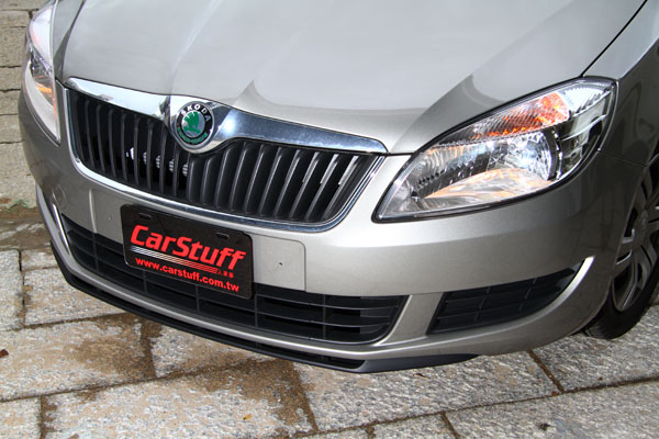 從上方角度欣賞,可以發現出Fabia 1.2TSI那圓潤中帶著明顯個性與角度的車頭線條,而下方的黑色塑料下擾流設計,更是VW集團中目前相當少見的配備。