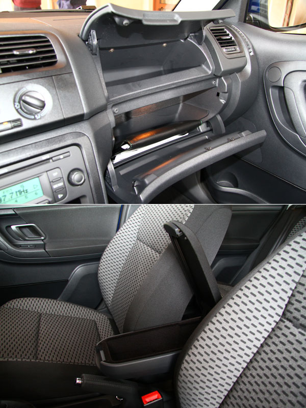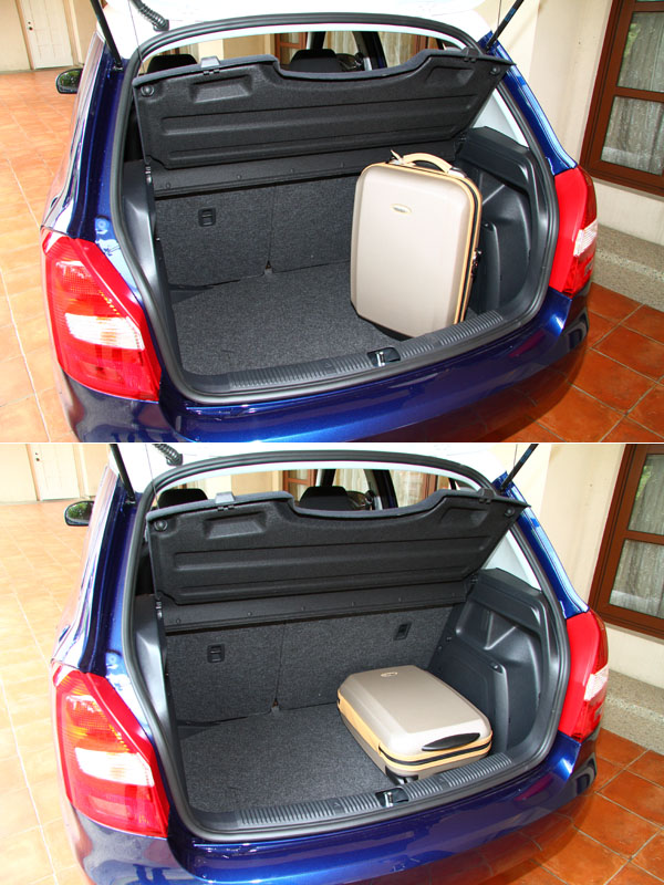內裝空間表現也與底盤相同,在與Polo相同的底盤衍生出的車身尺碼,透過類RV的概念,與較方正的車頂格局,讓Fabia空間表現更勝兄長,後座除了腿部空間表現不俗外,頭部的空間延展性更是出奇優異,以試車組從170-178cm不等的身形試乘,皆無有明顯的觸頂情事發生;而前座也透過簡單樸實的控台格局,或得一定水準的空間餘裕,在此面向,Fabia 1.2TSI作為一輛掀背小車,是有著超水準的演出,不僅較Polo 1.4更型出色,相較同樣來自德國的Ford Fiesta,Fabia 1.2TSI更有著諸多優勢。