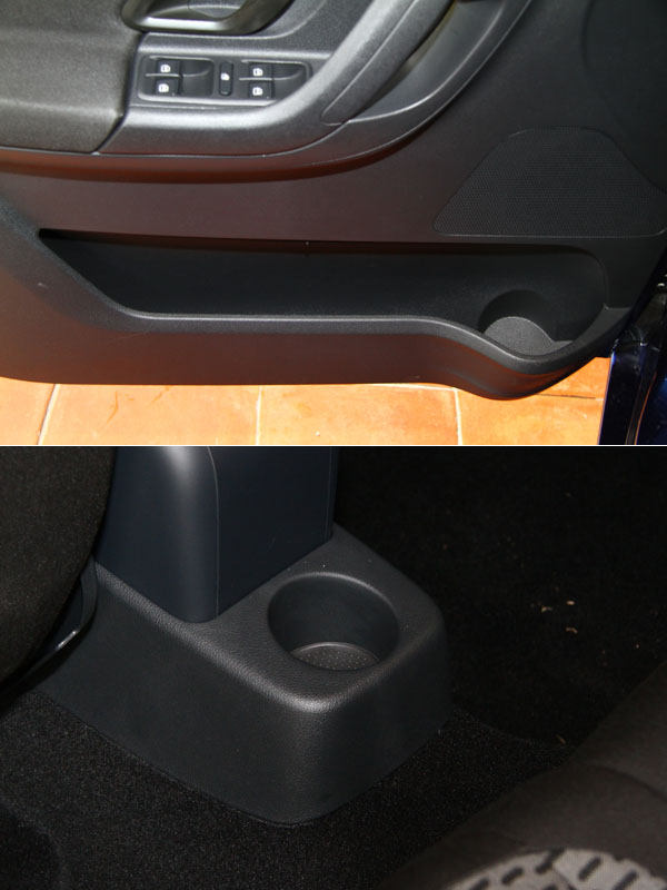 前門置杯架位於車門板底處,後座置杯架則位於中央扶手後方,僅有一個。