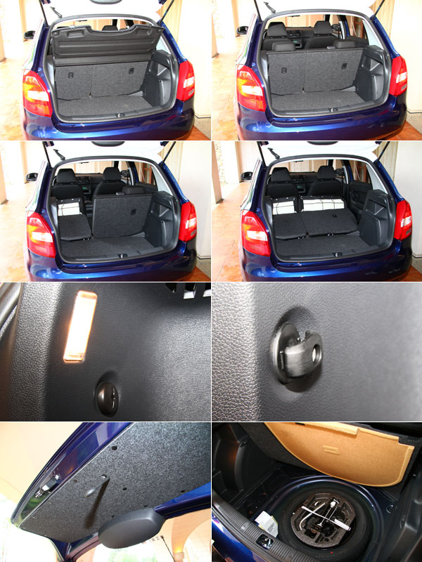 Fabia 1.2TSI透過可6/4分離的後座椅可讓後廂容積於315公升至1163公升間彈性切換;而後廂中也提供照明燈、掛勾提升便利;後廂下方則為備胎置放處。