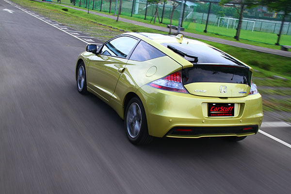 CR-Z搭載著油電複合動力系統,油的部分為1.5L直列四缸汽油引擎,電的部分則為超薄型DC無刷電動馬達,兩者整合後,根據測試可達21.1km/L平均油耗。
