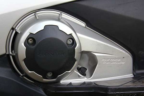 Integra的權衡招式還有一絕,近來在四輪領域大興其道的雙離合器自手排變速系統,也成為了Integra的標準配備,更式切入市場的招牌特色。延續VFR1200F的使用,讓Integra成為了史上第一輛使用雙離合器變速箱的速克達車型。此變速箱的利用,更完全切合了Integra的研發宗旨,結合兩種車型的優勢,雙離合器自手排變速箱,不也就是結合了手排與自排的兩方優點?