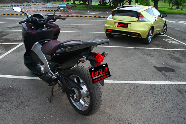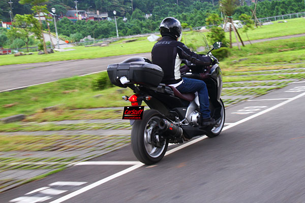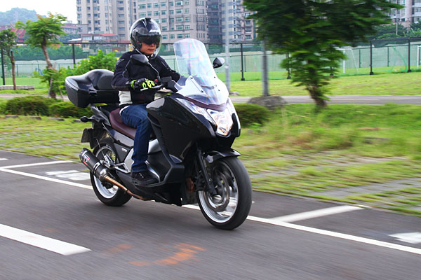 要將兩者結合,取其優勢,勢必也要有所犧牲,在Integra身上,少了傳統大型速克達的座墊下充裕的置物空間,換取的僅有15公升之容積,但鑽石型鋼管車架與前傾62度的直二引擎,讓其重心集中更似檔車;雖然還是沒有檔車那可供其是雙腳夾緊的油箱配置,但重新分布與前後配重,Integra已優於許多大型速克達。
