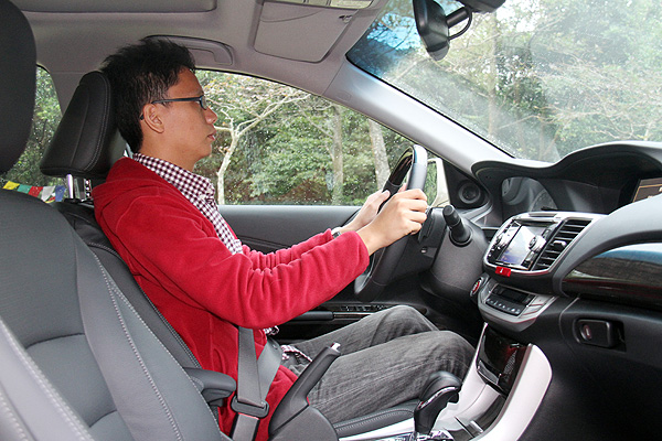 車長4880mm、車寬1850mm、車高1465mm的Honda Accord尺碼在這3款中大型房車中名列前茅,但2775mm的軸距卻敬陪末座。不過較為短促的軸距卻沒有因此影響了Accord的整體空間表現。在駕駛座的空間上,能夠為身高177公分、體重67公斤的編輯提供10公分的膝部空間與5公分的頭部空間,搭配椅面距車頂的92公分高度,雖然並不十分出色,但也沒有過多的壓迫感。搭配較寬且柔軟的座椅設計,Accord的前座採取了舒適性的走向。