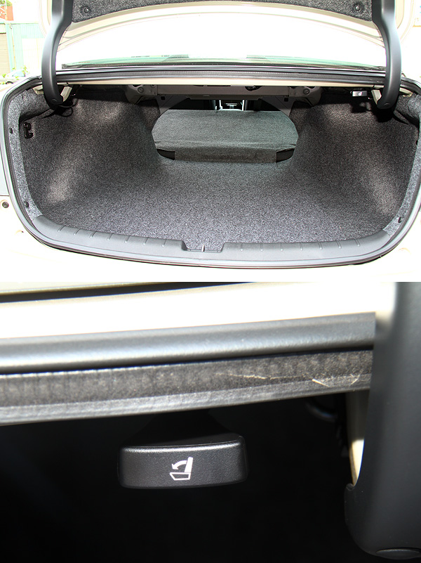 不過Accord的大尺碼體型卻未讓其行李廂的運用展現過多優勢,或許是將空間重點轉移至後座乘坐空間的緣故,Accord行李廂深度115.5公分、最寬處139公分、最窄處74公分與高度40.5公 分的數據並不突出。不過擁有整排傾倒的後排座椅,以及後座椅背快速釋放裝置,最深達203公分的行李廂深度多少讓Accord擁有更多的空間運用彈性,在先前與Camry等車款進行集評的測試中,也可以輕鬆放入兩組高爾夫球具袋。