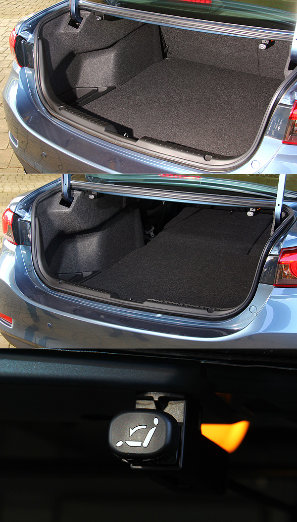 今年11月於臺灣市場發表的新一代Mazda Mazda6,車長4865mm、車寬1840mm與車高1450mm的尺碼雖然次於Honda Accord,不過2830mm的軸距卻佔據了榜首的位置。不過,比起Accord著重於後座空間的設計,Mazda6將前後座的空間運用鋪陳的更為平均。同樣以身高177公分、體重67公斤的編輯為比例尺,能夠提供15公分的駕駛座膝部空間,但受到流線造型的影響,頭部空間與椅面距車頂距離分別有5公分與93公分的數值,表現中庸。