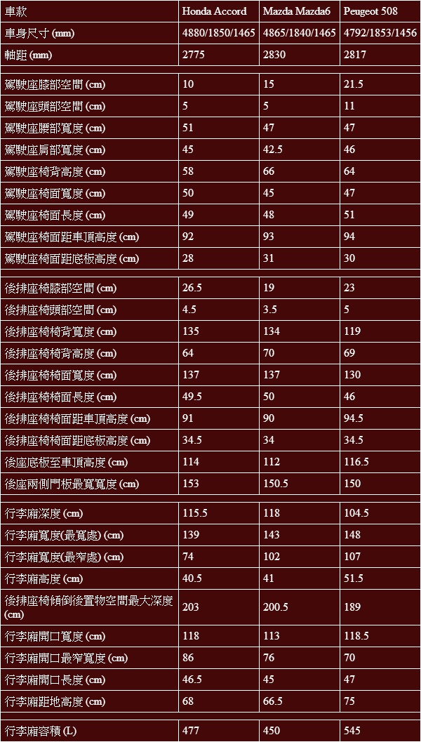 延伸閱讀:【集體評比】進口中大型房車硝煙再起 ─ Accord v.s. Mazda6 v.s. 508,動態身手篇