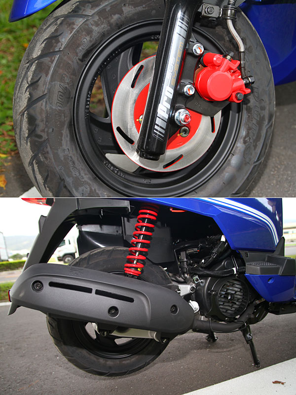 前碟式煞車與後雙避震設計,都是提升駕駛安全與穩定度的法寶。