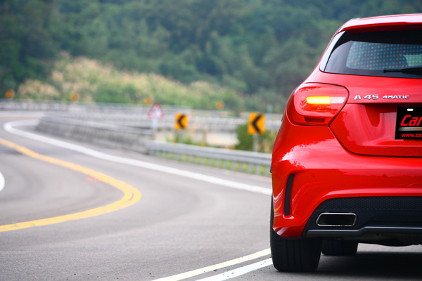 而彷彿就為了這瘋狂性格設下緊箍咒的,4MATIC四輪驅動系統與同樣聰穎的電子輔助系統,像是貼身家教般的隨時叮嚀不要把這輛車逼到路旁深淵,不過與其他大一號AMG不同的,只要動作與速度合理,A 45 AMG的電子循跡輔助系統也不會時時刻刻出來亂了興致,這當然絕對是因為這輛小掀背的底盤設定其實非常棒,對應起快到嚇死人的動力與速度,在負責穩定的四輪驅動與服務樂趣的後輪驅動間,取得了一個相當平衡的完美交會點,你很明確的可以感覺比起前軸,後頭的驅動力就是大上一點,不會有Audi S3那種笨笨的推頭狀況,進出彎幾乎能同時感受到四驅車的安定與後驅車的活潑,當然,這樣的速度會讓人很想一探極限的究竟,但奉勸你最好不要在公路上這麼做,真的,雖然A 45 AMG調得已經很好,但到底360匹實在不該是輛短軸距高重心掀背車所該有的動力,只要突然超過臨界點,接下來可就得賭賭運氣了。