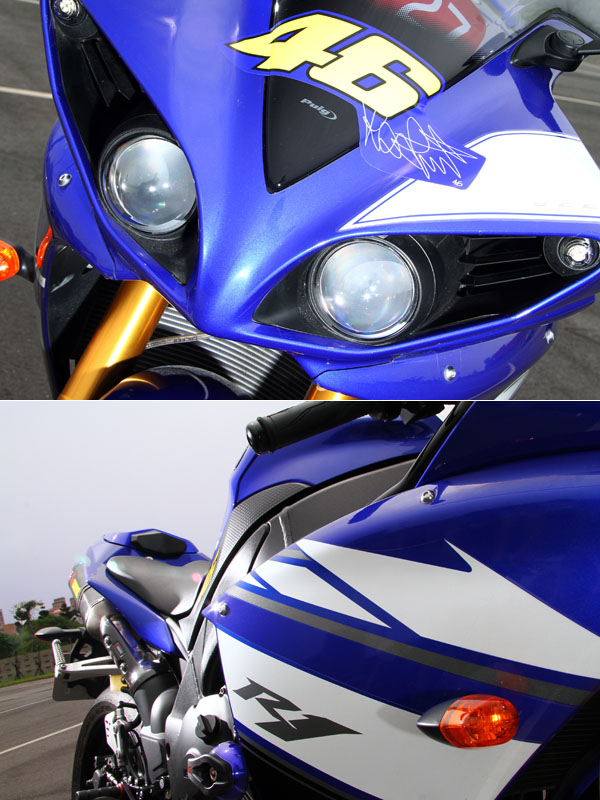 如同Exige S240延續Lotus於賽道上的多年經驗,YZF-R1絕對是Yamaha於MotoGP賽道上M1賽車的道路體現最佳代表。最精髓的科技傳承,莫過於那998c.c.四行程水冷直列四缸引擎內,比照M1引擎導入的十字曲軸設計,開了直四引擎曲軸設計先河,以非對稱式的點火間斷時間呈現出全速域更限性、更綿密的加速力道。