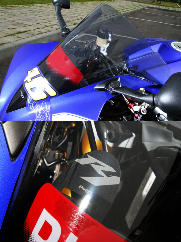 為減低高速時迎面而來的風壓,車主還換上了風鏡大廠Puig的專屬改裝風鏡,且安裝此風鏡,Puig還會送上儀表上方的遮陽板部品,避免眩光的產生造成儀表的誤判情事發生。