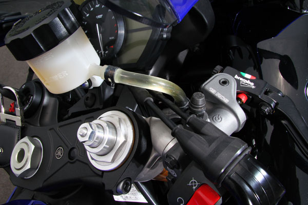 車主也換上了19ψ行程可調直推離合器上泵,透過 RCS比率調整系統,可以調整圓鈕比率的方式,適應應用於不同路面與不同騎乘方式之煞車需求。