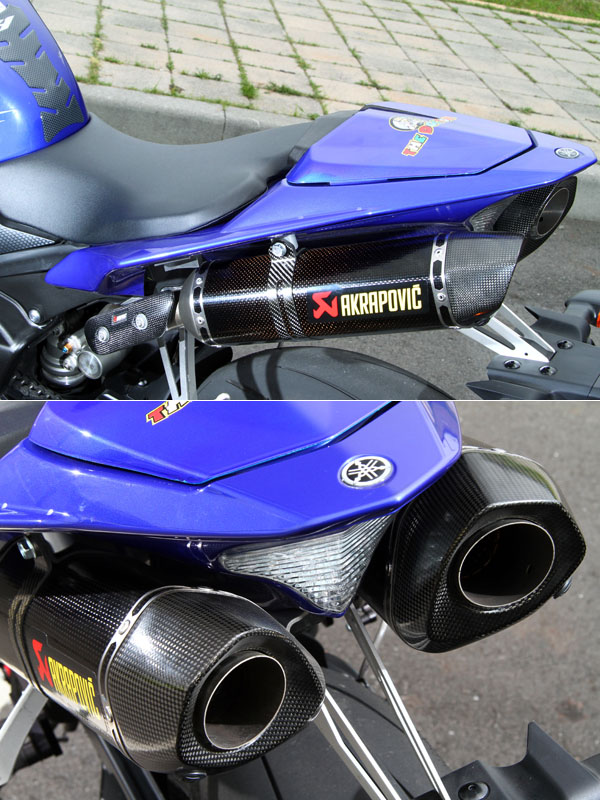 AKRAPOVIC的碳纖維排氣尾管,排氣聲浪更為澎湃。