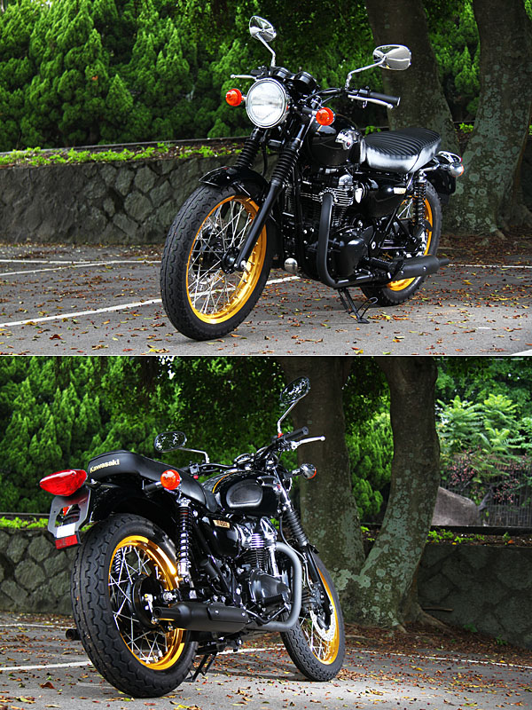 兩位英式代表之前,來自於日本的Kawasaki W800不顯自卑,從1966年問世至今的W車系,以當時旗下排氣量最大之W1車款打響名號,雖然為師法Bonneville的Vintage Bike家族成員,但在日本自傲的工匠技藝打造下,Vintage Bike少了些英皇自豪的優越,取而代之的是嚴謹的精準態度。透過前輩W650自1999年問世後打下的穩固基礎,2011年現身的W800一問世後立刻發光發熱。
