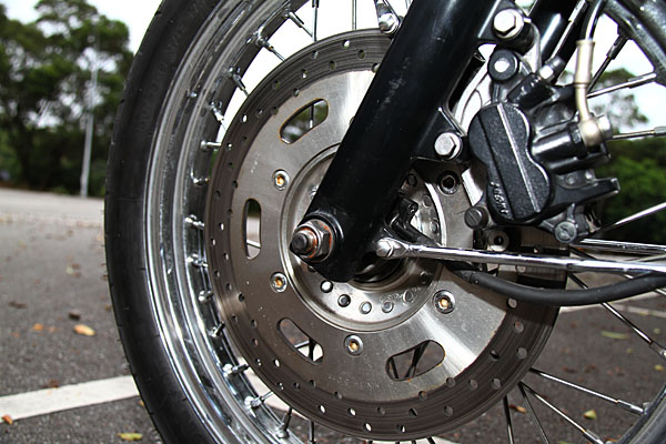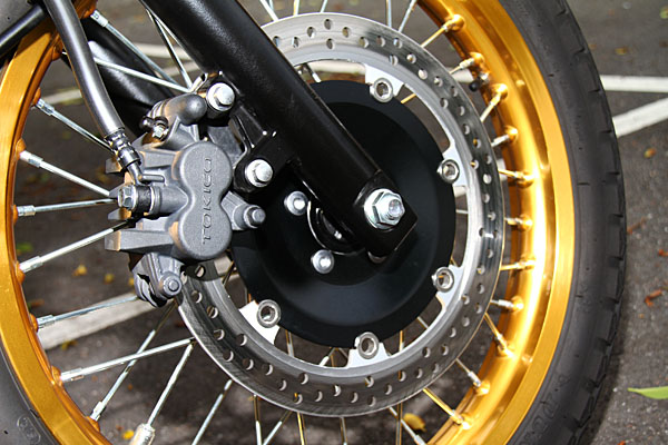 前煞車規格為300mm浮動碟搭配Tokico雙活塞卡鉗。