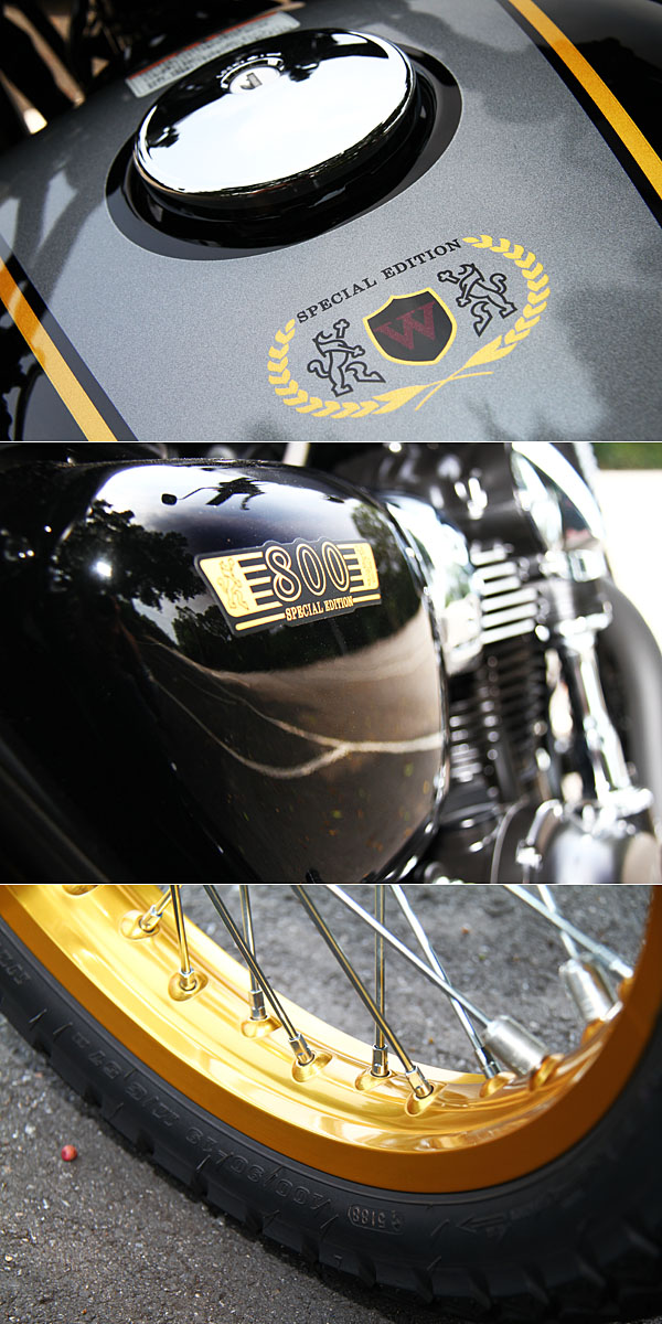Kawasaki W800特仕版以全黑塗裝為獨有設計,與大量運用亮面鍍鉻的一般車型產生區別。