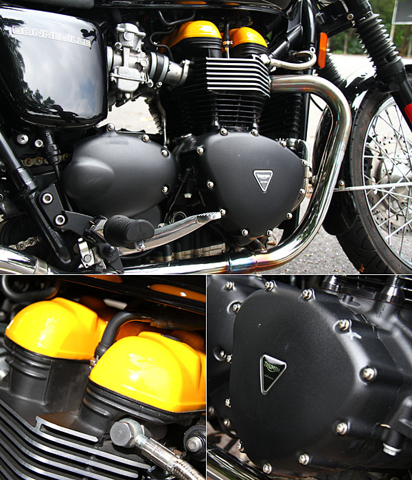 空冷四行程並列雙缸引擎規格,排氣量為865c.c.,黃色的引擎上蓋處理相當醒目。