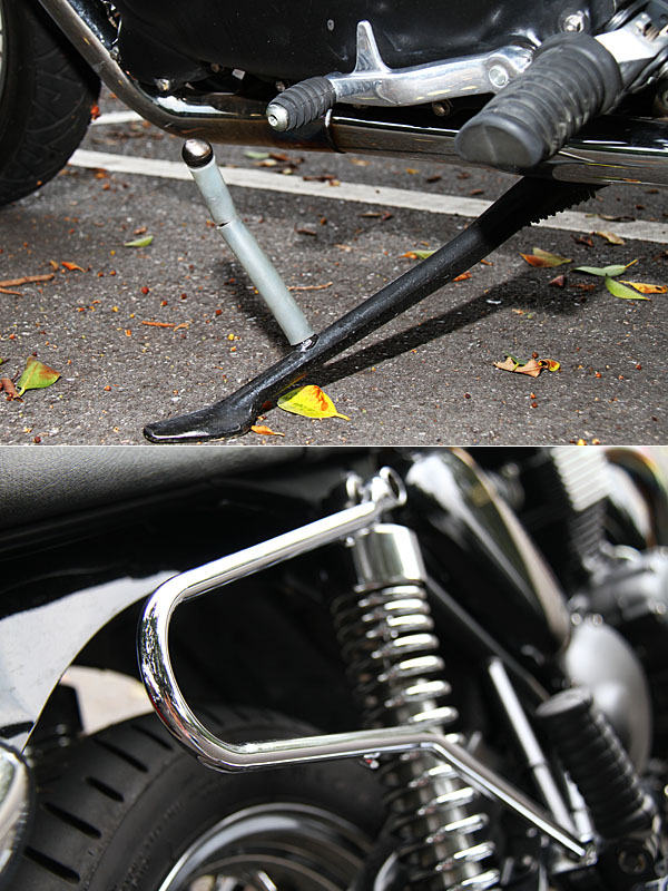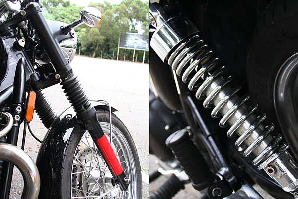 空冷並列雙缸的直接裸露、鋼絲輪圈、從上方欣賞略為外八的魚雷式左右雙排氣尾管,低沉的排氣音浪,成為其除了視覺造形外,聽覺上的一大辨識特徵。騎上它,猶如自由穿梭時空隧道般的優遊騎士,你更會重視自身打扮能否與其匹配,綜合點些許的氣質與叛逆,才能達到相得益彰的精彩。