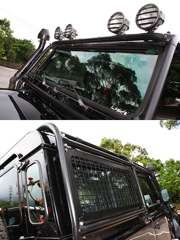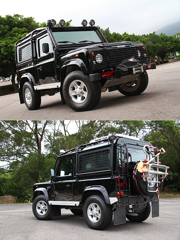 此次現身的2004年式90短軸車型,搭載著2.5L Td5直接噴射渦輪增壓柴油引擎,傳統簡單的手排變速系統,搭配上30.6kgm之飽滿扭力,雙檔位加力箱、中央差速器、高達51.3度/53度/152度的進入/離去/穿越角的黃金三角表現,簡單的數據,卻清楚說明其地表征服能力;經過車主的強化改裝後,攀附A柱的進氣孔、強力燈組、防撞護欄一應俱全,不僅粗獷氣息更具,戰鬥力更是大增,搭配上黑色車身,硬派經典,不過如此。