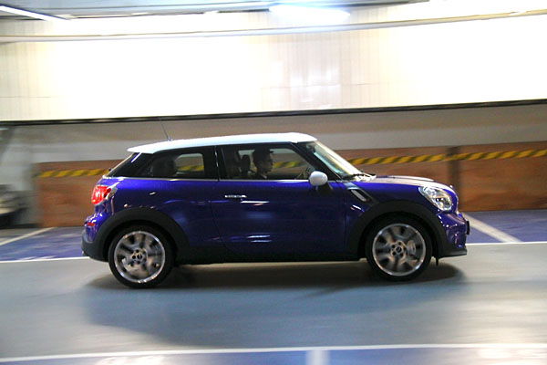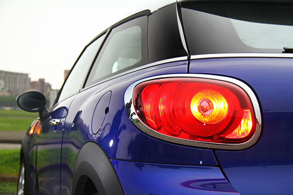 身為家族中的新成員,Mini Cooper S Paceman立基於Countryman的基礎上,但運用上了三門設定,毫無疑問的,增加了個性與跑格許多,且少去了兩個車門後,後輪拱造型也不因此單調,更多了肌肉感的外突輪拱,並受惠於簡化的C柱造型,更為傾斜後,搭配上揚的肩線,讓B柱後的Mini Cooper S Paceman更為簡單,卻也更具力道。為了增加後方的辨識度,兩側的尾燈向內佔據了尾廂門的部分鈑件,不再如Countryman般直挺挺的站在車尾兩旁,而下方順勢增加的黑色塑料面積也帶來了粗獷感,左右各一的排氣尾管,則做了性能態勢的最佳結尾。